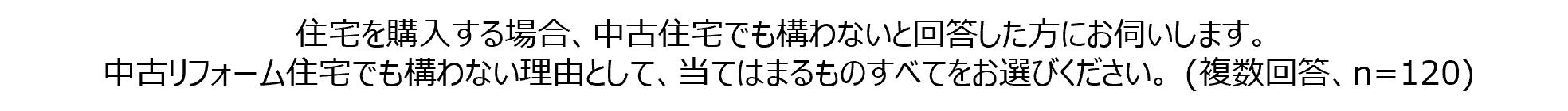 - 中古住宅でも構わない理由は「新築住宅の価格高騰」や「リフォームで綺麗になる」が約半数