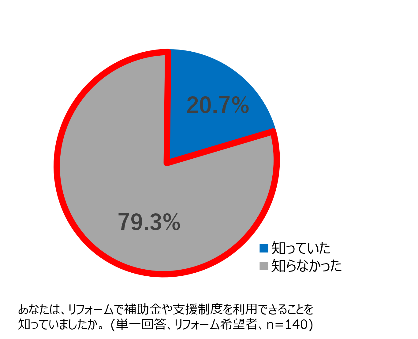 リフォーム希望者の約8割が補助金や支援制度を知らないと回答