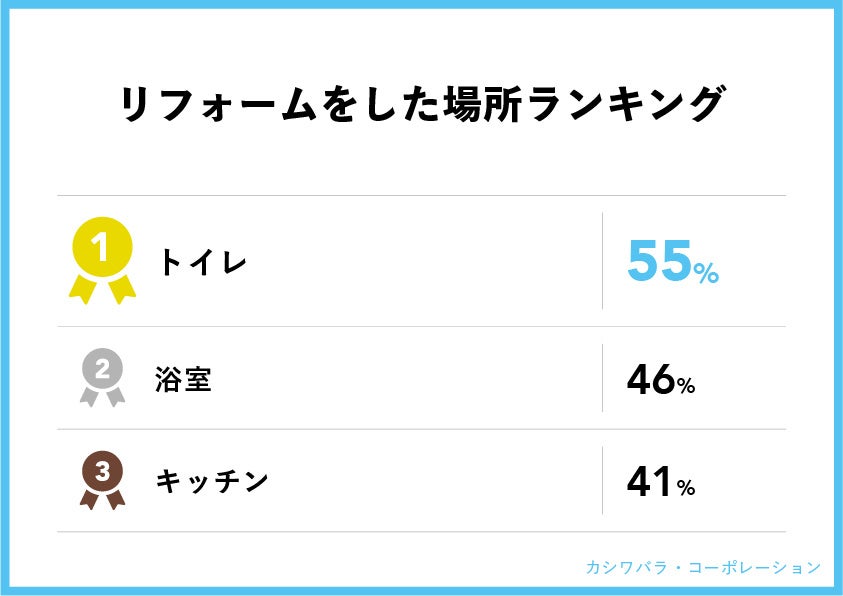 - リフォーム経験者のリフォーム場所1位は「トイレ」、次いで「浴室」その理由とは?