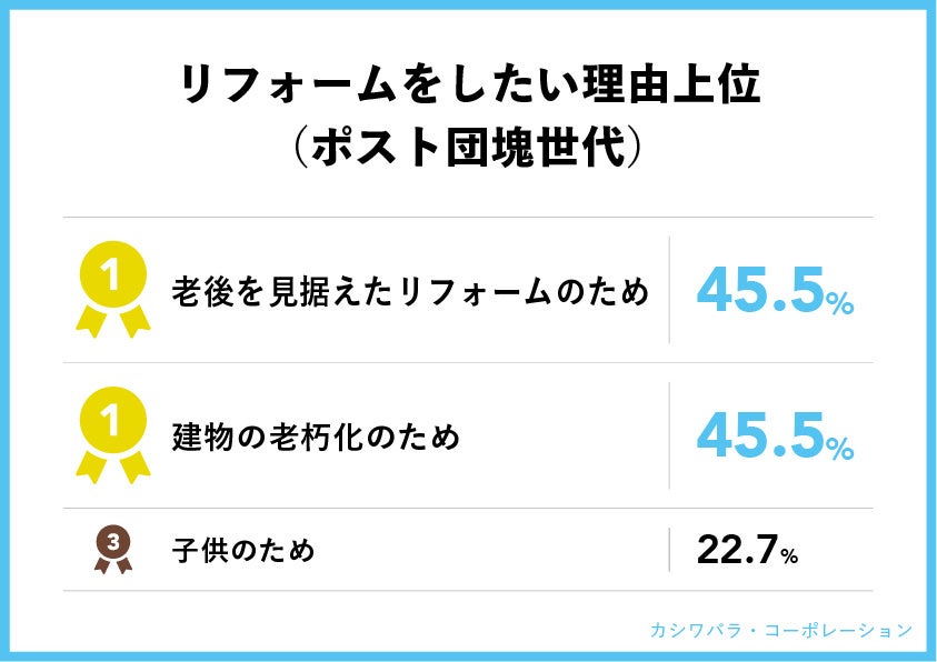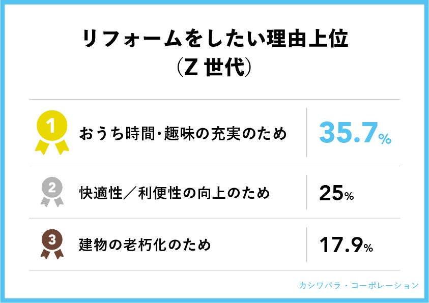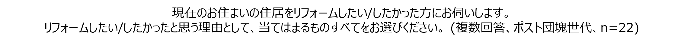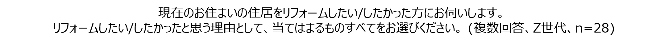 - Z世代は「おうち時間のため」、ポスト団塊世代は「老後を見据えたリフォーム」がリフォームを希望する理由のトップに