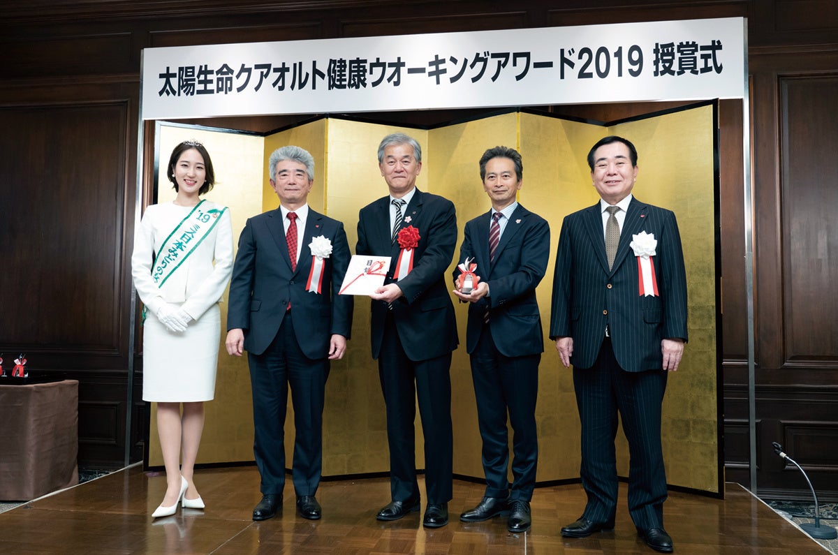 同アワードは、太陽生命保険株式会社の人生100歳時代を“元気に長生きする”という社会的課題に応えるプロジェクト「太陽の元気プロジェクト」の一環として同社の賛同を得ることで、受賞すると財政負担なく寄付・採納という形で同ウオーキングの仕組みを導入できます。