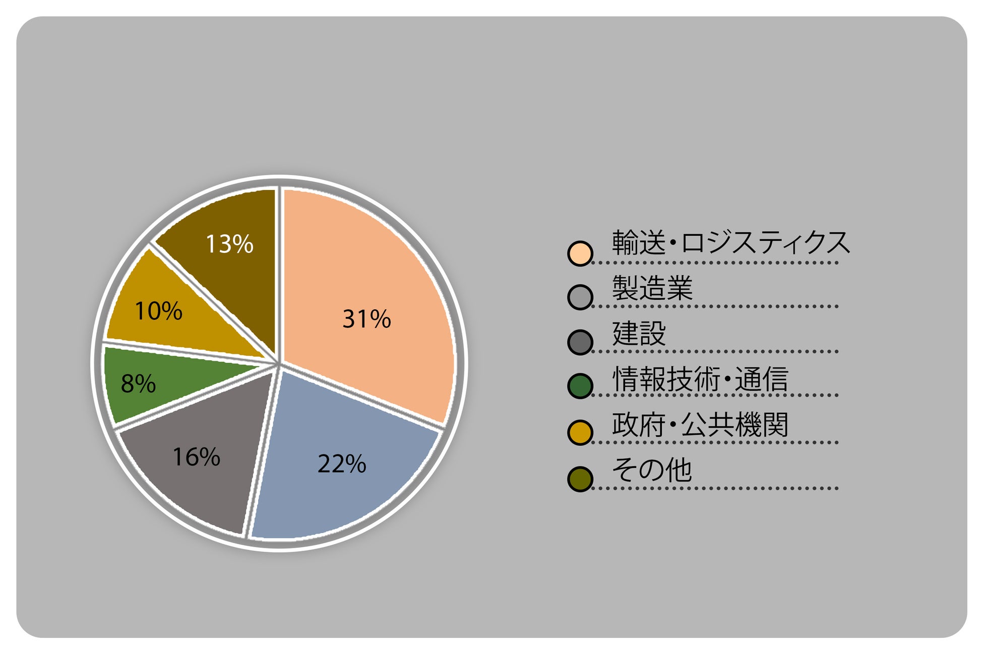 業界別では、市場は運輸と物流、製造、建設、情報技術・通信、政府と公共部門などに分類されます。 運輸および物流は、2021 年の 31% のシェアで市場をリードしています。