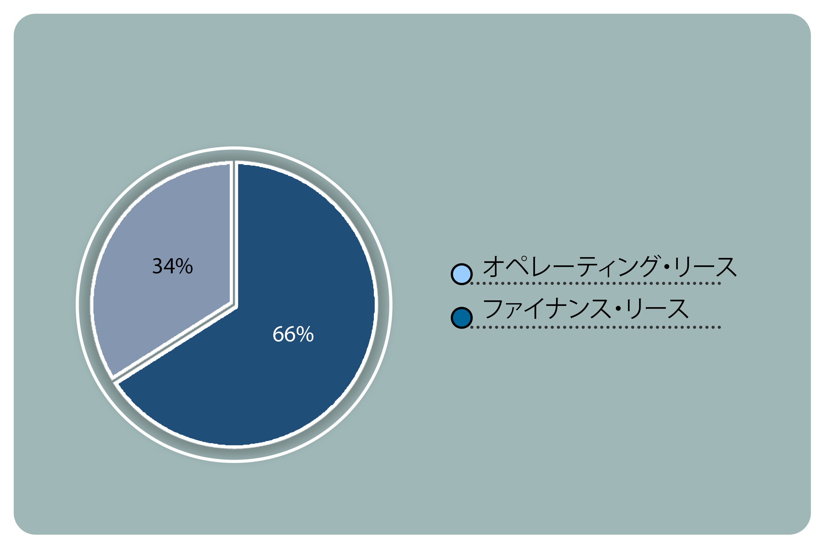リースの種類に基づいて、市場はオペレーティング リースと金融リースに分かれます。 オペレーティング リースは、2021 年に 66% のシェアで市場をリードしています。
