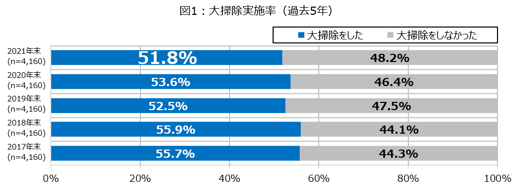 2021年末の大掃除実施率は51.8%。調査開始以来最低の実施率に。