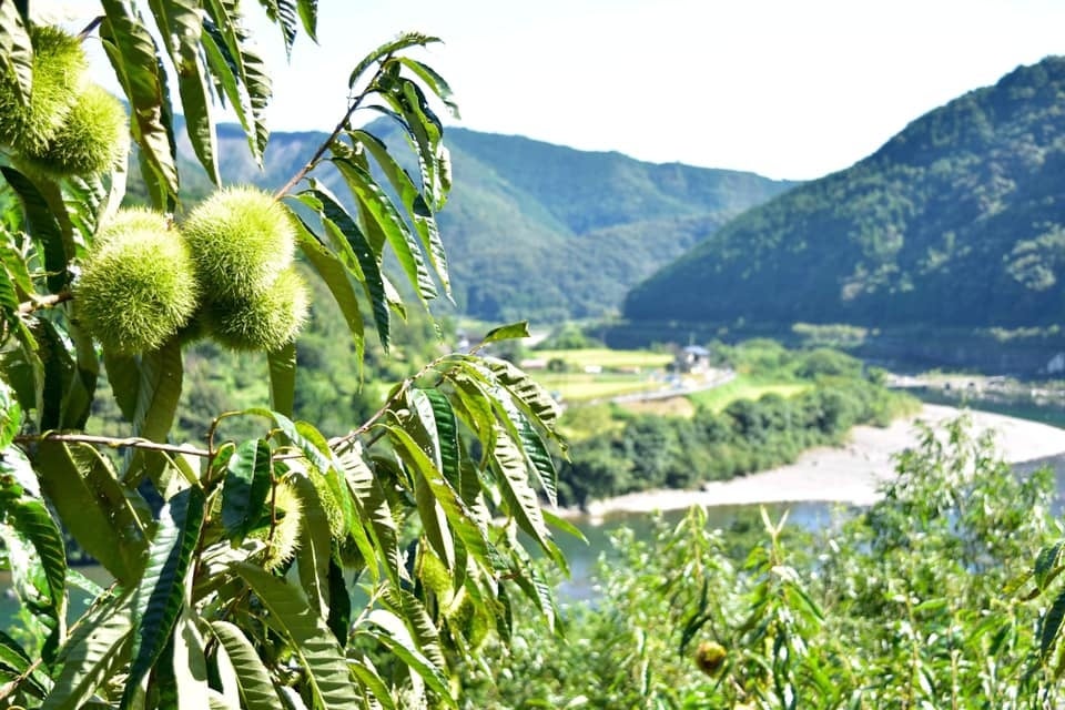 (四万十川を臨む栗畑で、今年も新栗を収穫しています。)