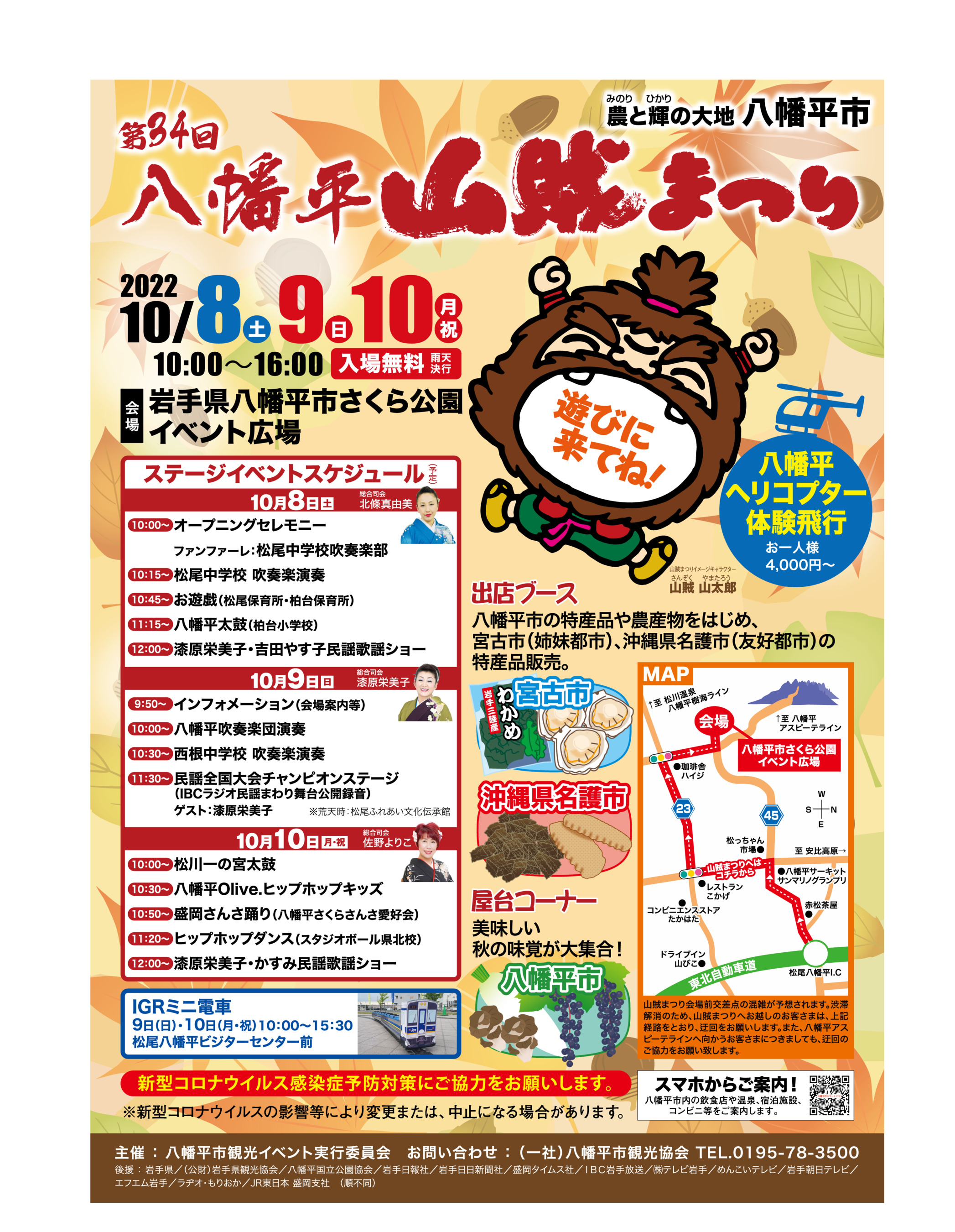 2022年10月8日(土)・9日(日)・10日(月・祝)に開催する第34回八幡平山賊まつりにて、「八幡平の地熱えだまめ」を株式会社肉の横沢ブース内でお披露目致します。
