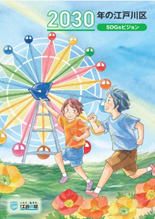 を掲げている。また、2030年に江戸川区が目指す姿を27枚の絵葉書風イラストで紹介している。