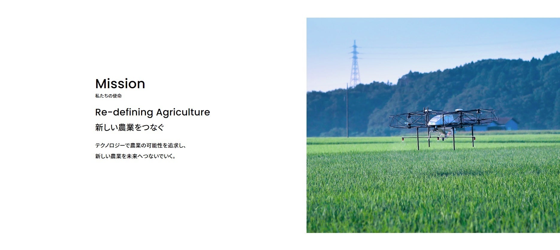 「新しい農業をつなぐ」をミッションに掲げ、「農業用ドローン」と「農業DX」を推進しています。高精度な完全自動飛行、効果のある防除、安全性にこだわり、ドローンの開発に取り組んでいます。そして、ドローンで撮影した空撮画像などの様々なデータは、農業プラットフォーム「NileBank」で一元管理し、データと解析技術により農業の最適化を目指します。