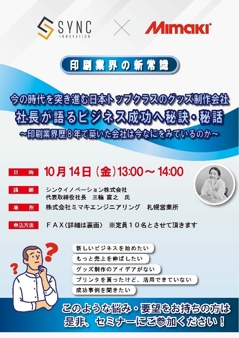 (株)ミマキエンジニアリング札幌営業所にて(株)シンクイノベーション代表の無料セミナーが開催されます!