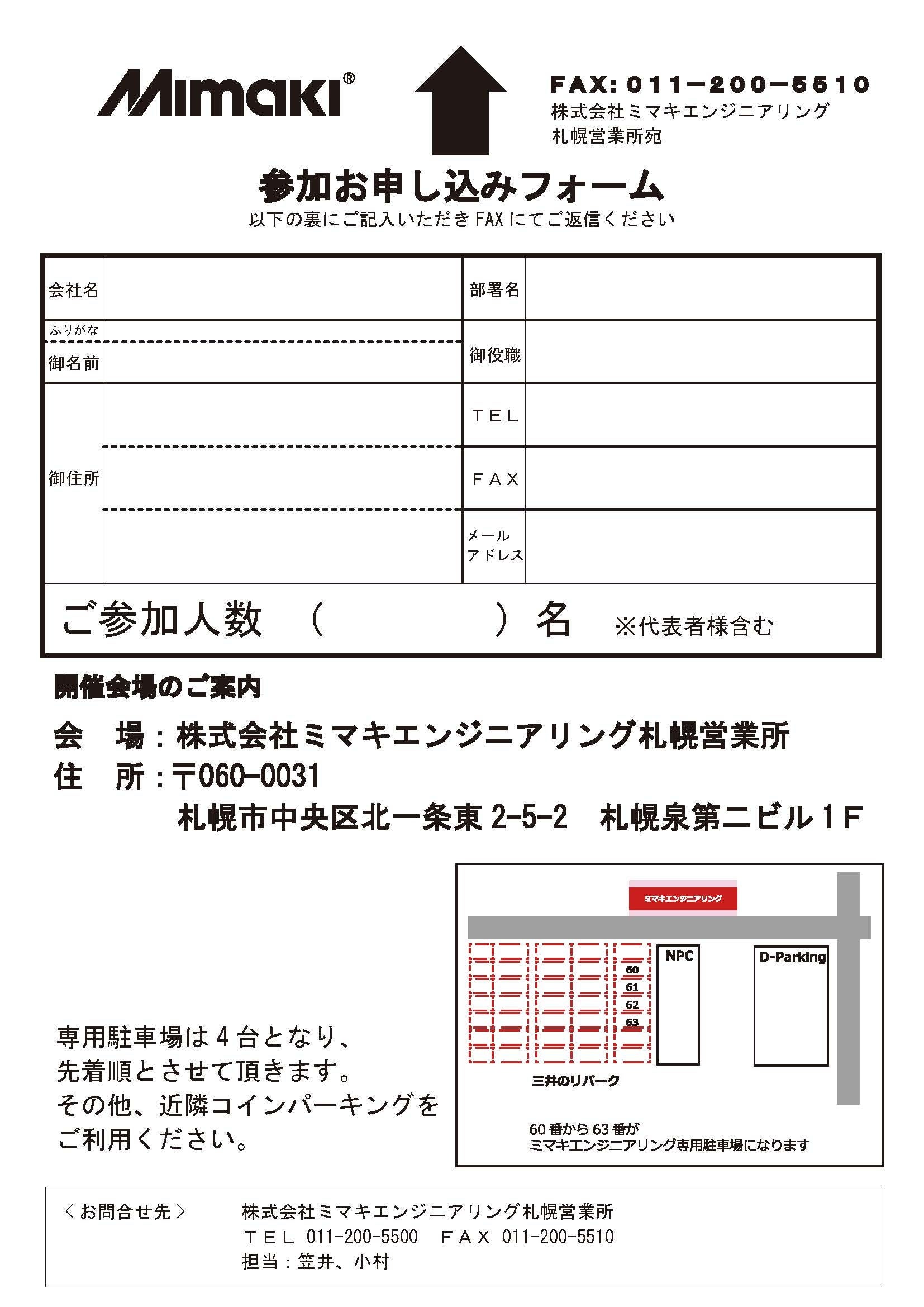 申込フォームにご記入のうえ 、 FAXにて送付いただきますようお願い申し上げます。