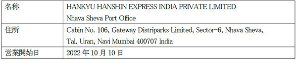 当社インド法人であるHANKYU HANSHIN EXPRESS INDIA PRIVATE LIMITEDは、インド有数の商業都市ムンバイの南東約70kmに位置するナバシェバ港に新たに事務所を開設し、10月10日より営業を開始します。