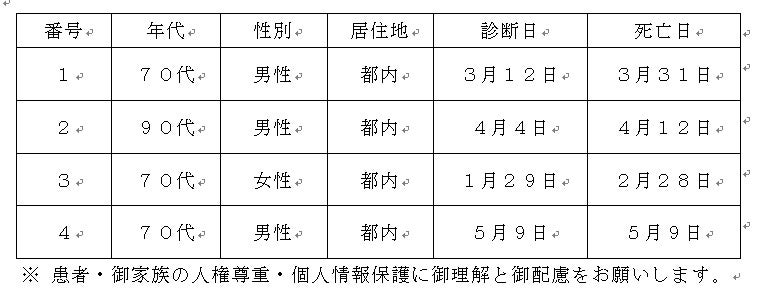 新型コロナウイルスに関連した患者の死亡について business Twitter Facebook はてブ Pocket LINE コピー 2022.06.04 この記事は約1分で読めます。 都内で新型コロナウイルスに感染した方が死亡されましたのでお知らせします。 お亡くなりになった方のご冥福をお祈り申し上げます。