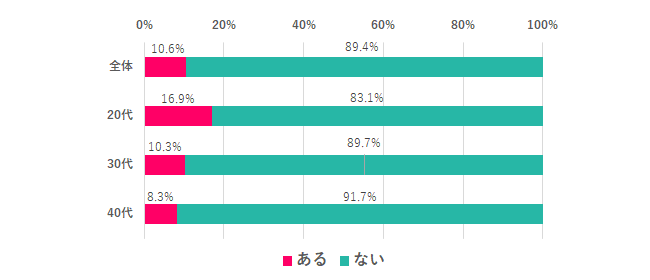 書類選考に通過し、企業から面接日程の調整連絡が来たのに、無視したこと(返信しなかったこと)はあるかどうか尋ねたところ、全体では10.6%の人が「ある」と回答しました。