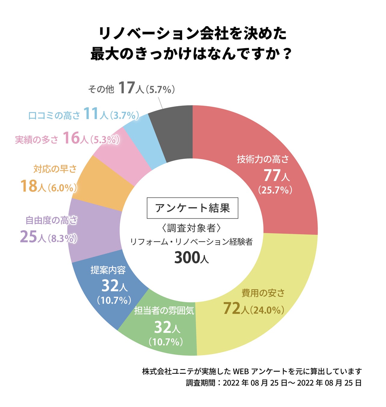 - リフォーム・リノベーション経験者が業者を決めた最大のきっかけは「技術力の高さ」