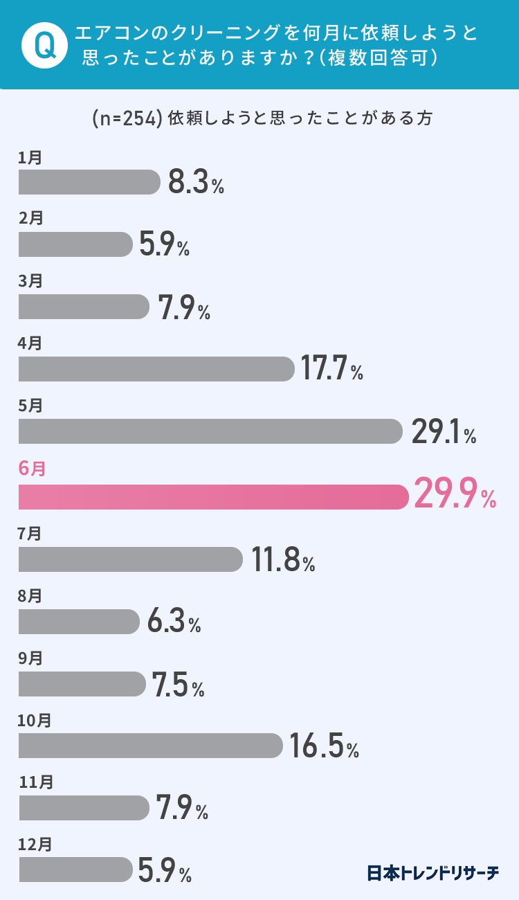 ■20.4%が「エアコンクリーニングをプロに依頼したことがある」 何月が多い?