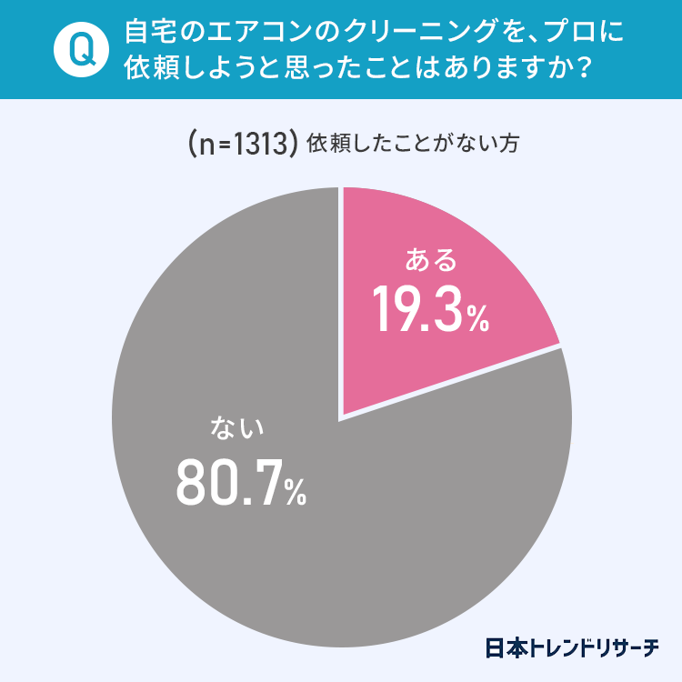 まずは、自宅のエアコンクリーニングをプロに依頼したことがあるか聞きました。