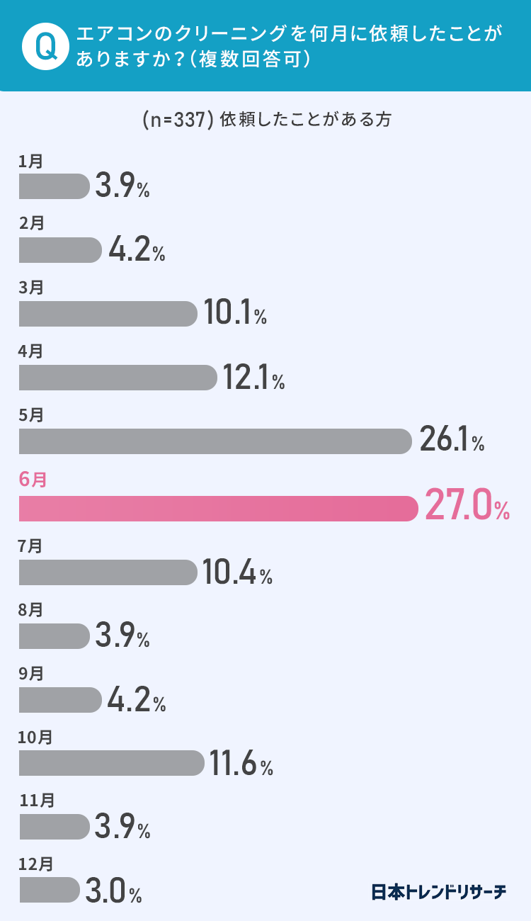 ■20.4%が「エアコンクリーニングをプロに依頼したことがある」 何月が多い?