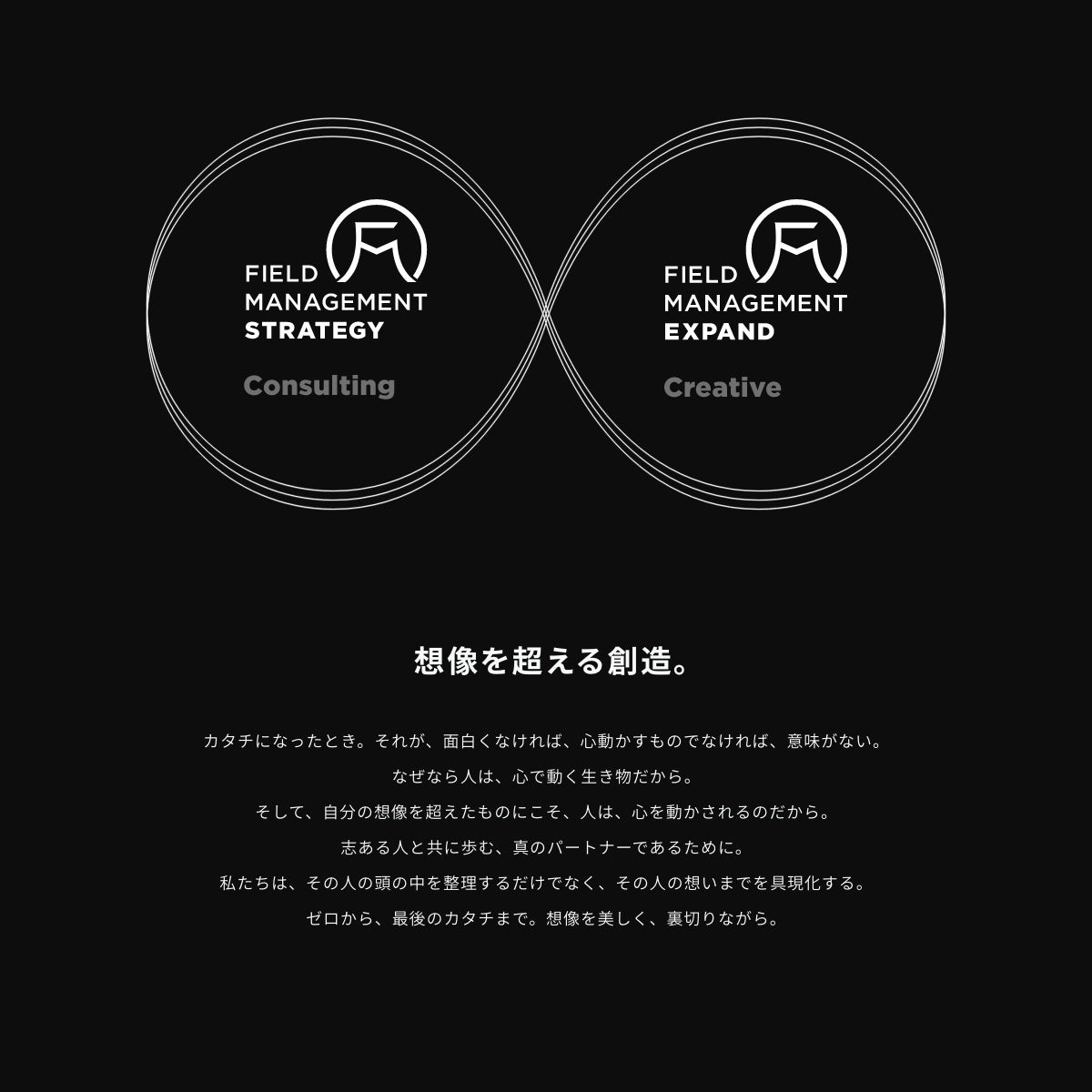 フィールドマネージメントは2009年9月に設立されたプロフェッショナルサービスファームです。戦略コンサルティング、戦略と連動したクリエイティブの制作と運用を含む実行支援、クライアント企業とのコラボレーションによる新規事業の開発・運営、企業の将来を担う次世代リーダーの育成事業などを展開、「事業のリアリティを知るプロ」たちが在籍し、数多くの支援実績を有しています。