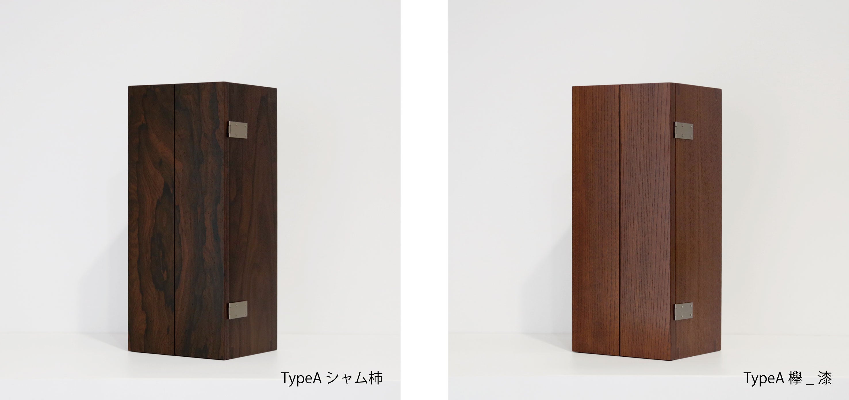 今回厨子屋開廊20周年を迎えるにあたって内田氏が描いた祈りのかたちに、希少材を使用した「TypeA シャム柿」と、国産漆を施した「TypeA 欅_漆」の限定モデルを発表いたします。