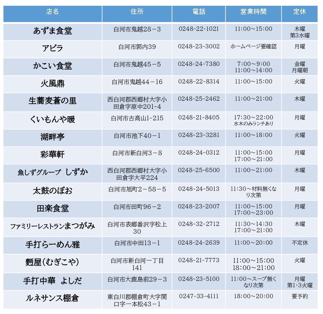 <テレワークタウンしらかわ クーポン券利用可能店一覧>