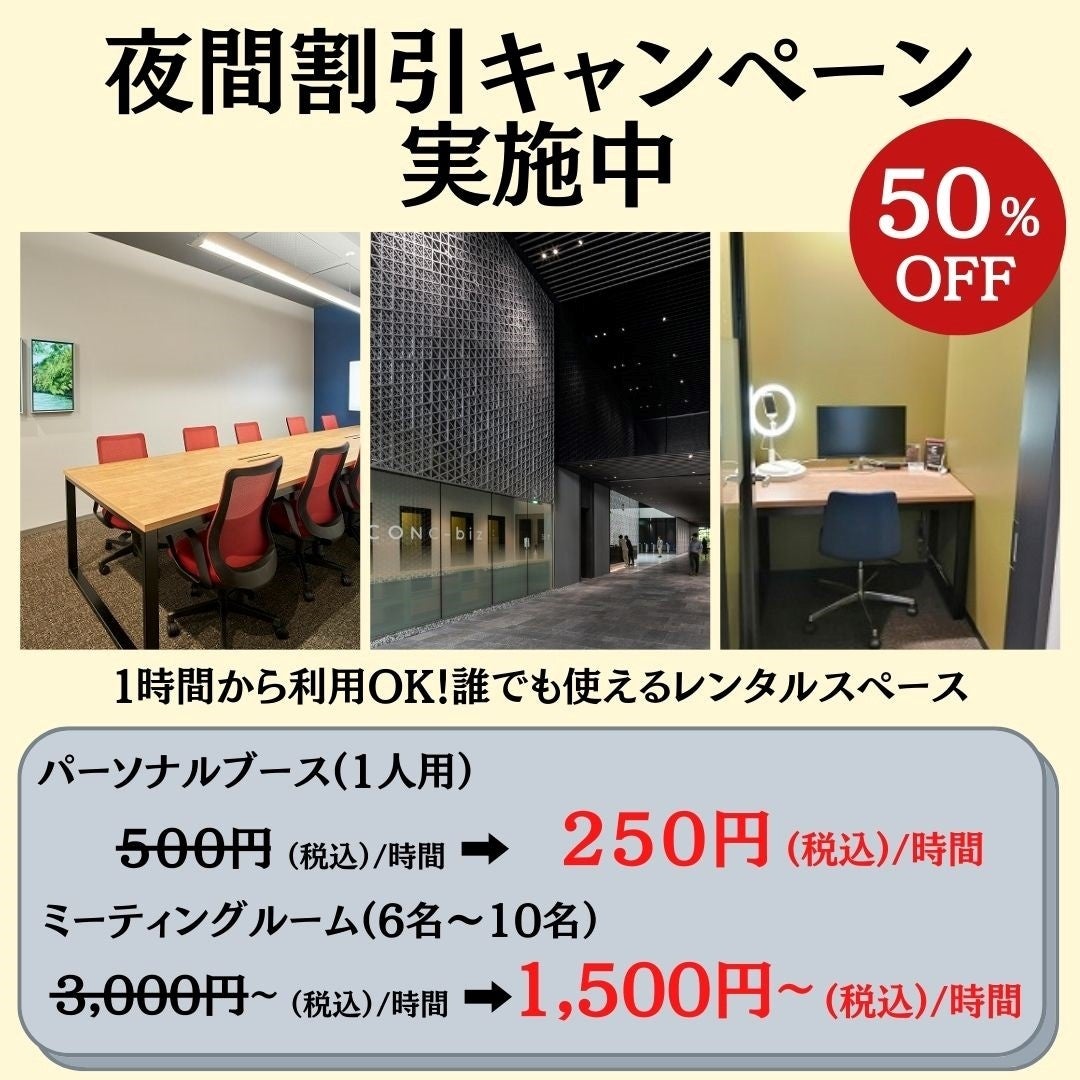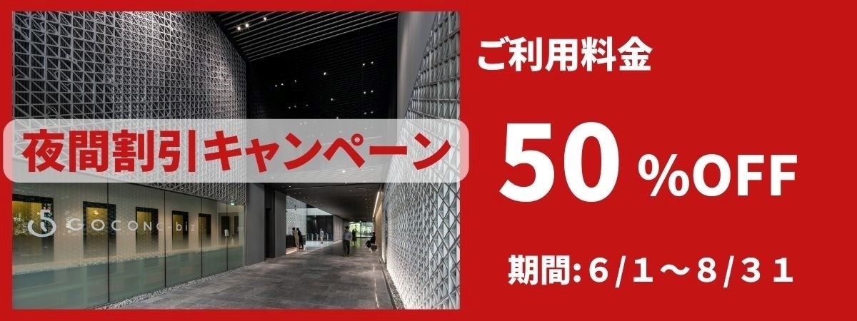 このたび、6月1日~8月31日の期間限定で21時~23時の夜間利用の料金が半額になるキャンペーンを実施します。夜間に集中して勉強したい方、趣味のサークル利用などを検討されている方、是非ともこの機会にご活用ください。