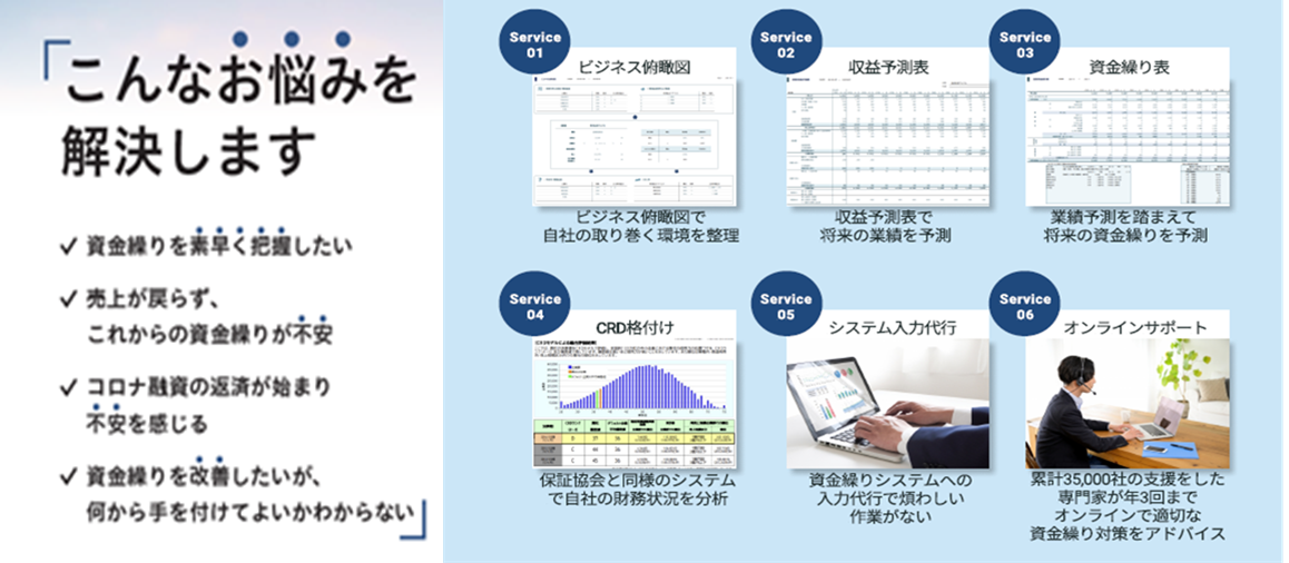特徴:①資金繰り表作成に必要な財務帳票はお預かりの上、入力を代行。