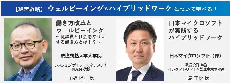 また、経営戦略の一環として重要視されているウェルビーイングやハイブリッドワークに関する講演も開催いたします。変化に耐えうる新たなワークスタイルに注目が集まる今、日本マイクロソフトが実践するハイブリッドワークの取り組み事例や、働きがいのある会社の創り方について学べます。