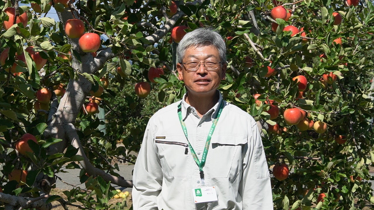 昭和61年度入庁の群馬県職員で「紅鶴」の育成者。試験研究機関にてリンゴやブルーベリーなど寒冷地果樹の新品種育成や栽培試験に取り組むとともに、普及機関で生産者の支援指導をしてきた。現在は、後進の研究員とともに「温暖化」に対応した品種を育成すべく、業務にあたっている。