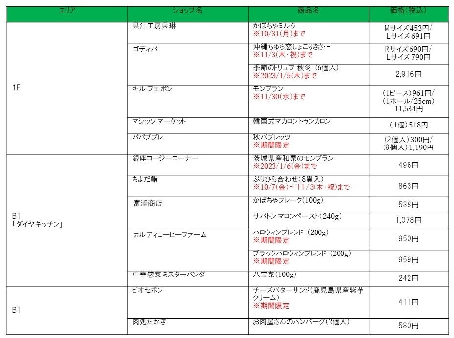 - その他 ジョイナス各店のおすすめ秋の味覚 (一部抜粋)