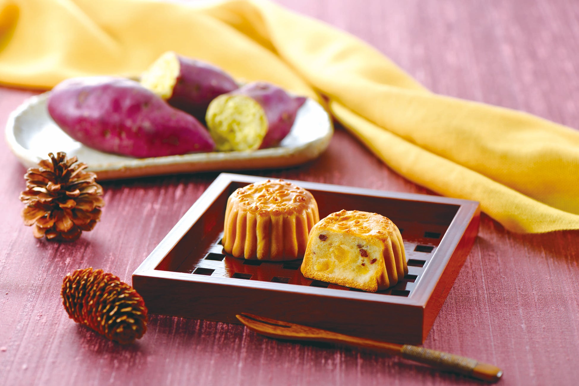 皮付きの角切りさつま芋を練り込んだ、焼き芋のほっくりとした食感と自然なやさしい甘みが楽しめる月餅。