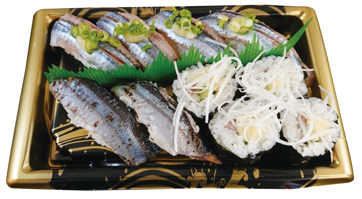 脂が乗ったさんま、炙りさんまの握りと巻物がセットになった期間限定の盛り合わせ。