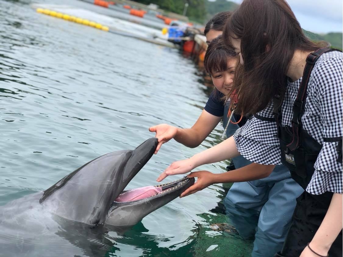 自然の海にいるイルカたちと、至近距離でふれあえる施設。2019年のリニューアル後、アメリカのドルフィンリサーチセンター(DRC)と飼育技術提携を行い、DRCが提唱する「ヒトとイルカの心が通う信頼関係」構築を基礎とした飼育を実践。イルカとのふれあいで癒されること間違いなし。