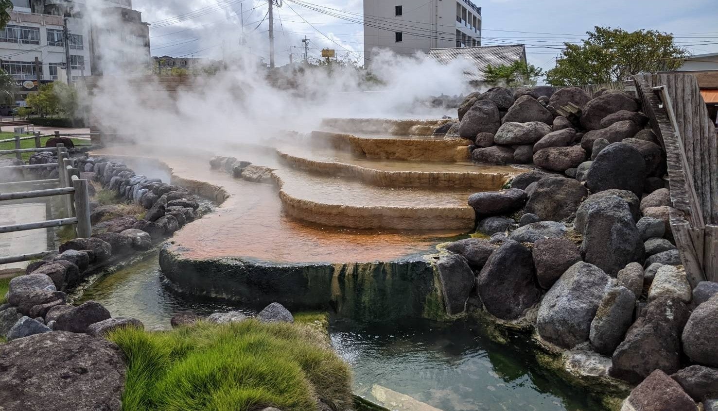 腰かけ足湯のほか、ウォーキング足湯やペット足湯なども用意されていて、隣接する蒸し釜は食材を持参すれば無料での利用も可能。(蒸しかごは有料にてレンタルあり)