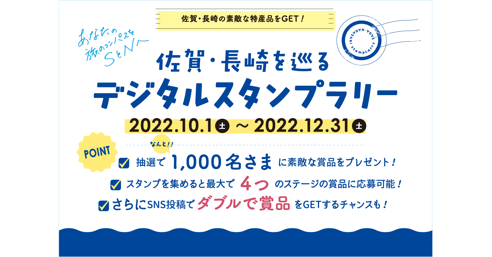 佐賀・長崎を楽しく巡るスタンプラリーに皆様のご参加をお待ちしています。