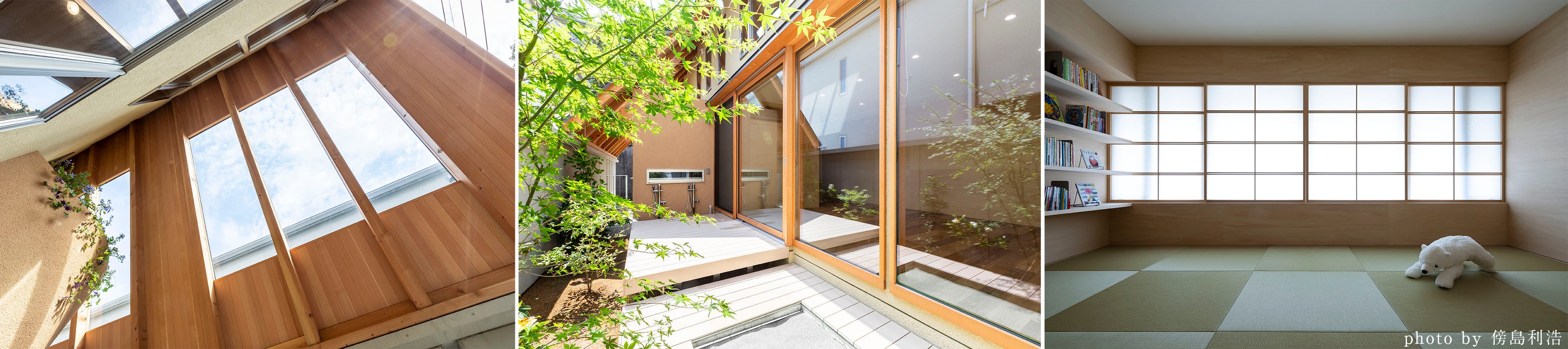 住宅でありながら1階を認可外保育とこども食堂として地域に開いている点が大変高く評価された。家を建てるにあたって、自分の住宅を地域にも貢献するものにしようというクライアントの姿勢が素晴らしい。隣地境界に沿って建てられたコンクリート塀に大きな木造の屋根をかけ、敷地半分を地域に開いた半外部空間としている空間構成が明確である。半外部空間は玄関を挟んで奥を園庭、手前を地域に開いた広場として想定してあり、イベントなど今後の展開が期待できそうである。個人の住宅を町に貢献する施設としても機能させるこうした事例が増えていくと、町は確かに変わっていくであろう。