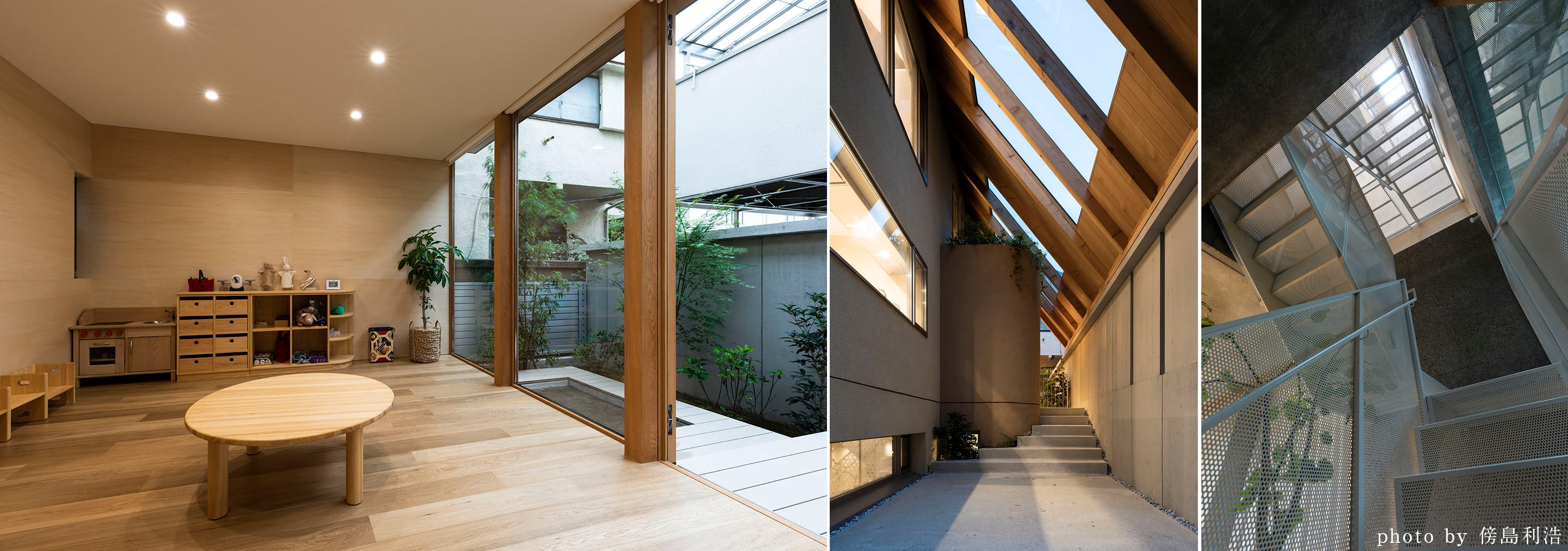 都心に建つ、住まいの1階部分を「認可外保育+こども食堂」として街に開いた住宅。
