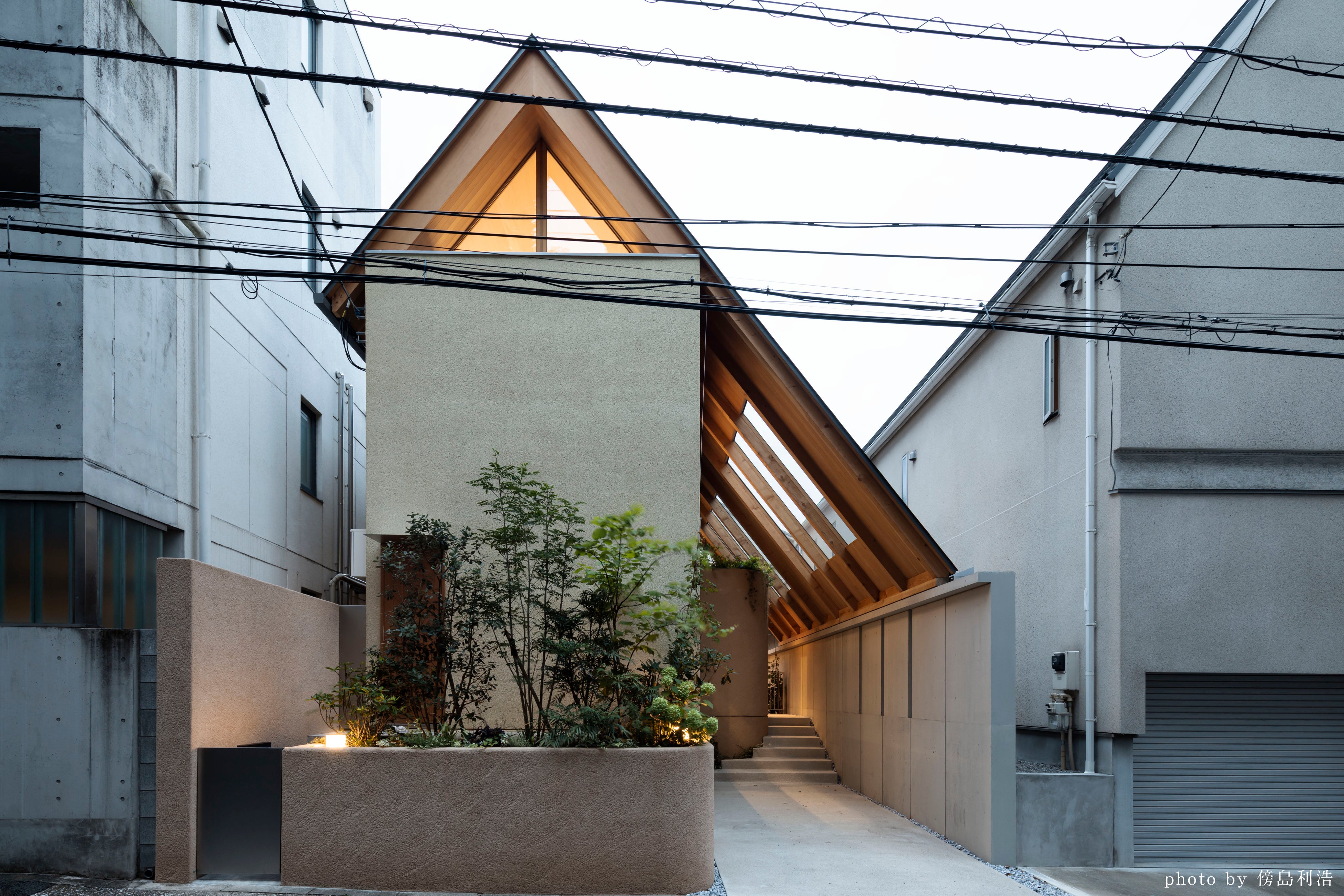 計画地である東京都港区では土地条件等の制約から、十分な園庭を有する施設の割合は認可保育園でも1割に満たない。また、核家族化や共働き世帯の増加、就労形態の多様化などにより、都心区ならではの保育サービスが求められている。オーナー自身の住まいと共存しながらも保護者が安心して預けられる利用しやすい保育施設とすることで、孤独になりがちな子育て世代を支え、健全な地域づくりを行う手助けを目指している。Kids Home ぶどうの木では、敷地の半分を屋外として扱うことで奥行きのある外部空間を地域との接点として位置付けている。急勾配(12.5寸)の切妻屋根による外観は、どこか積み木遊びから生まれたような明快さを持ち、こども達からも認知されやすいアイコンとしての役割も果たしている。建物を印象づける木の大屋根が内外を緩やかに繋ぎ、住まいの空間と共存しながらも、こども達が安全にのびのびと過ごせる居場所をつくりあげている。