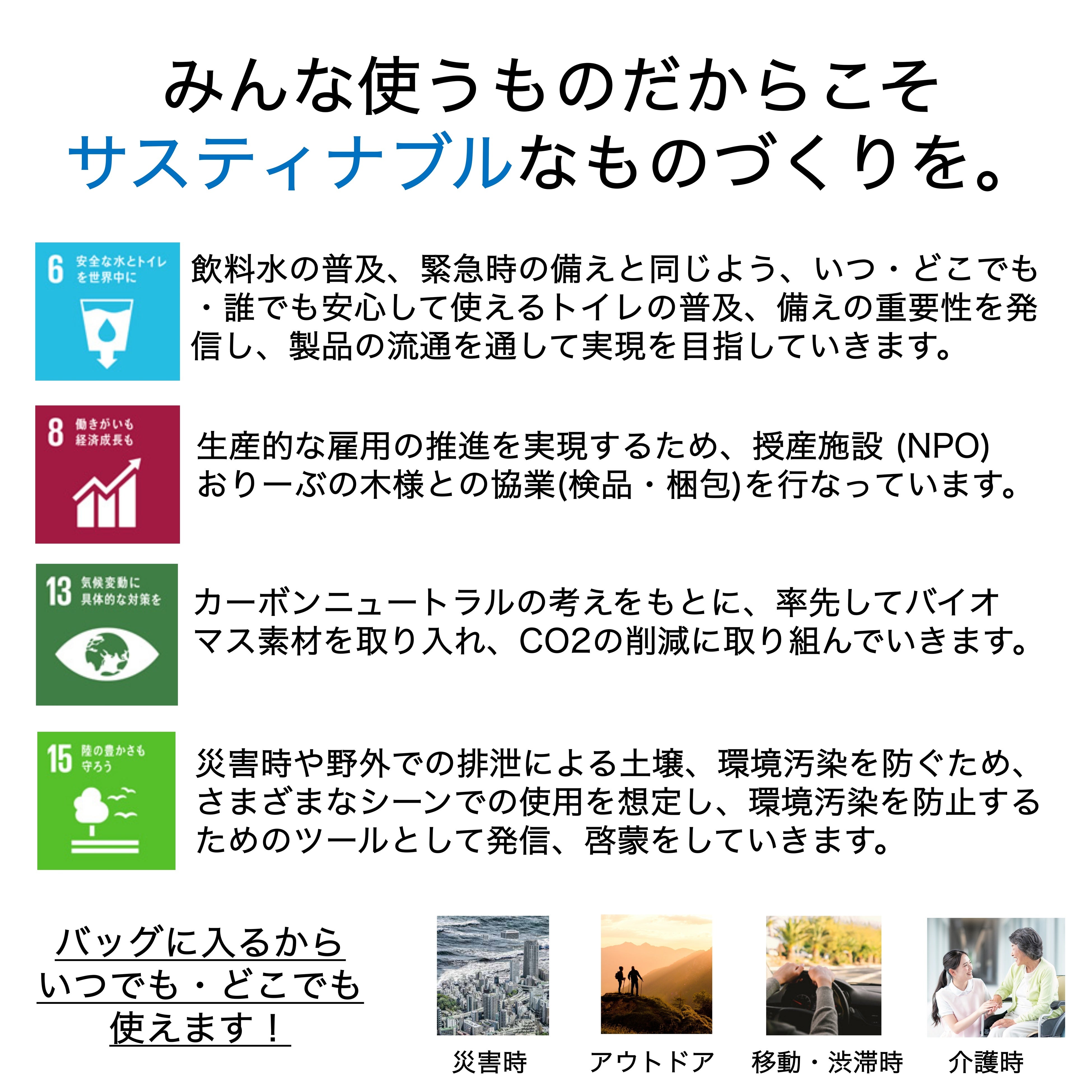 当社では今回の受賞を契機に大小両用携帯用ポリ袋トイレPeePoo®︎(ピープー)の販路拡大を図るとともに、災害時・緊急時におけるトイレ準備の重要性を積極的に発信し、ブランドイメージの向上に務め、持続可能な開発目標(SDGs)の実現へむけて取り組んでまいります。