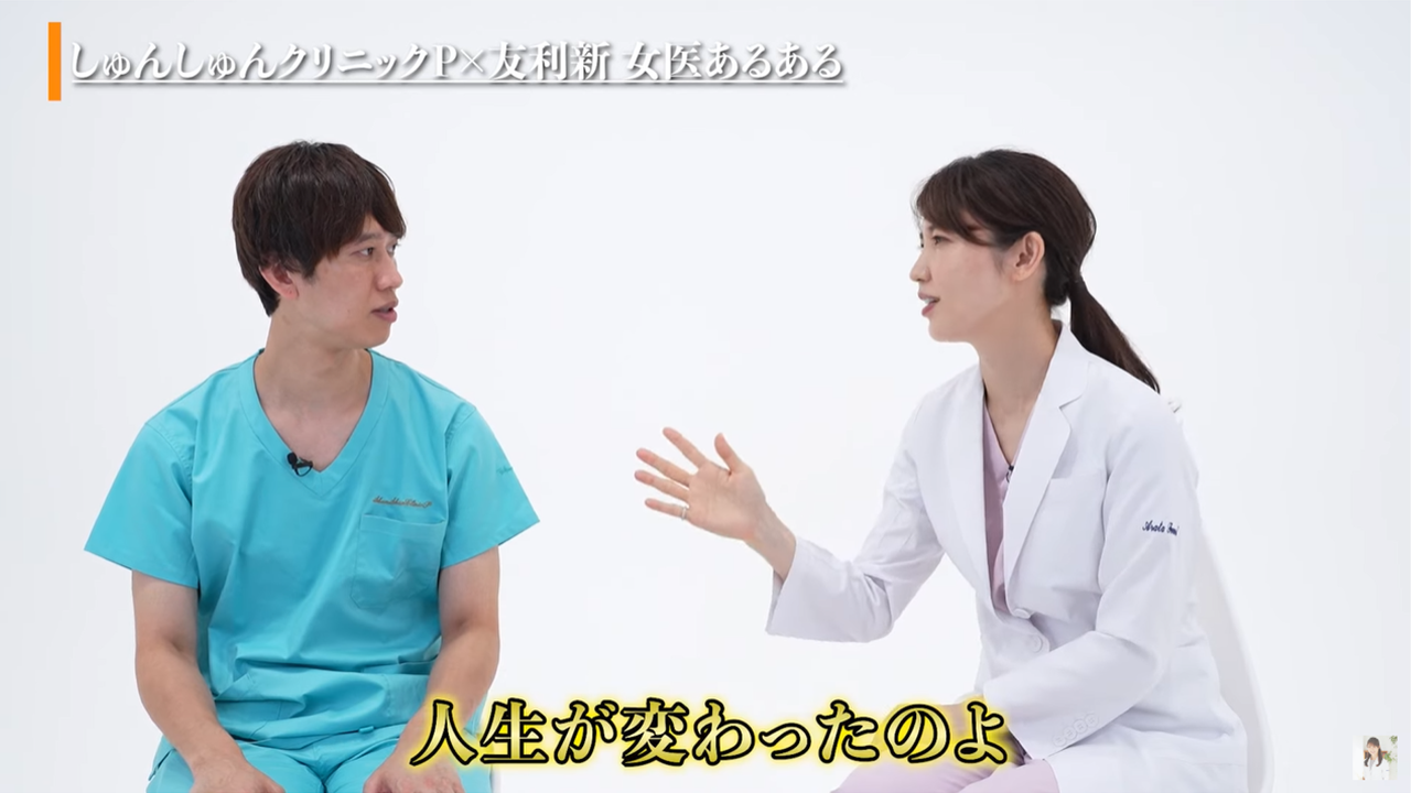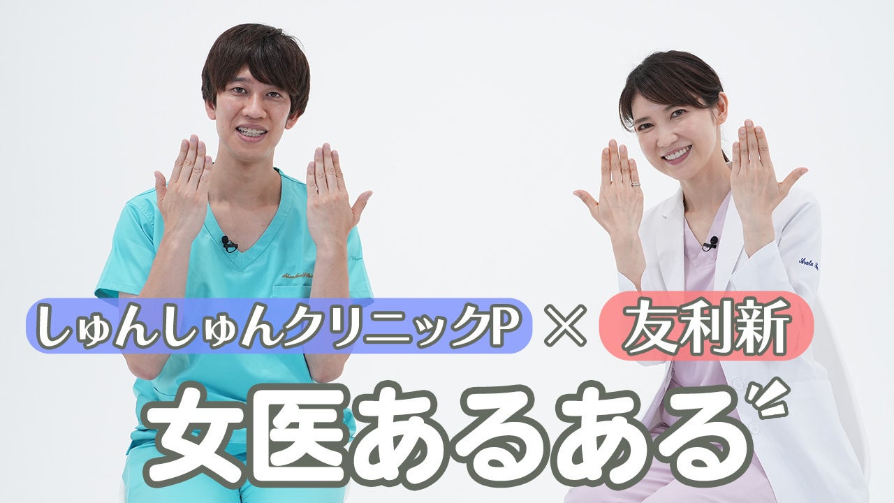 本動画では、「【しゅんしゅんクリニックP×友利新】女医あるあるについて語ったら面白すぎた【コラボ】」と題し、現役の医師として活躍するしゅんしゅんクリニックPさんと友利さんが“女医あるある”をテーマにした即興コントに挑戦。コント後の対談では、コラボのきっかけやコントには収まりきらなかった“女医あるある”について実際の体験談を交えながら楽しくトークするといった内容でお届けしています。
