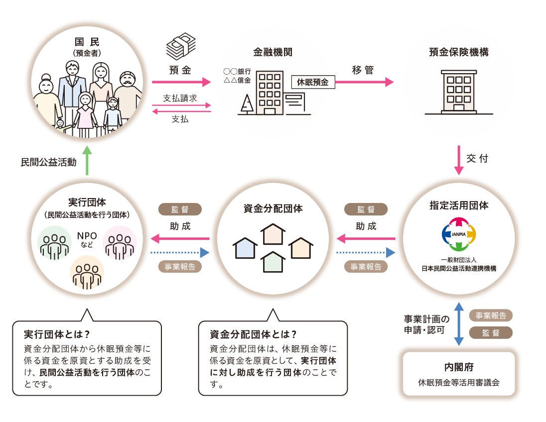 [休眠預金の流れ(JANPIA ウェブサイトより)]