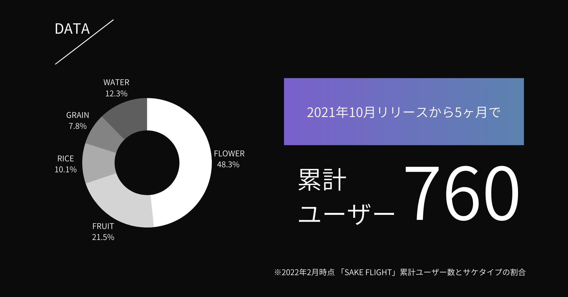 『SAKEFLIGHT(サケフライト)』は、日本酒とフードペアリング、アプリで読むコラムで、毎月異なるエリアの日本酒を特集しお届けする日本酒の定期便サービスです。旅行がしづらい昨今でも、自宅にいながら、各地の小旅行を楽しめる体験として、2021年10月のリリースから5ヶ月で累計ユーザー数760名を突破し、多くの方にお楽しみいただいています。