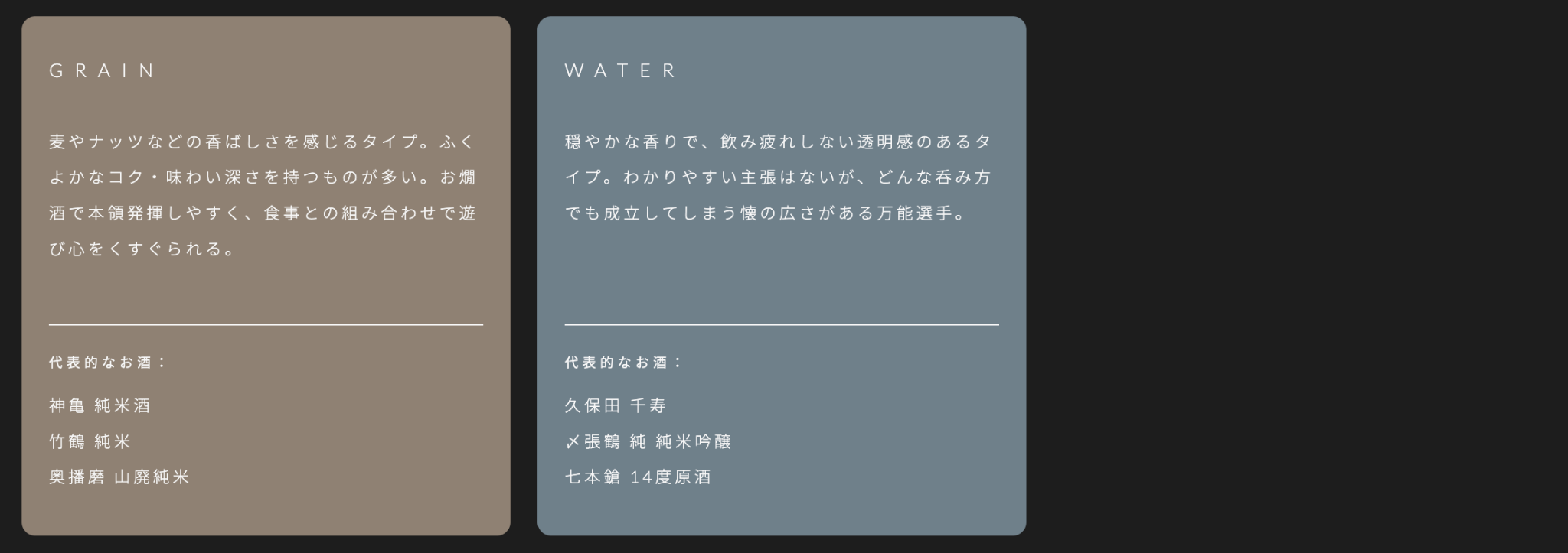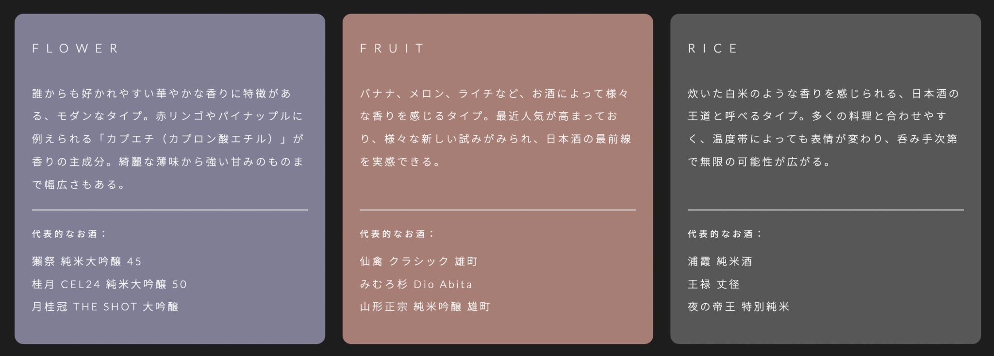 サケタイプについて:https://sakeflight.jp/sake_types