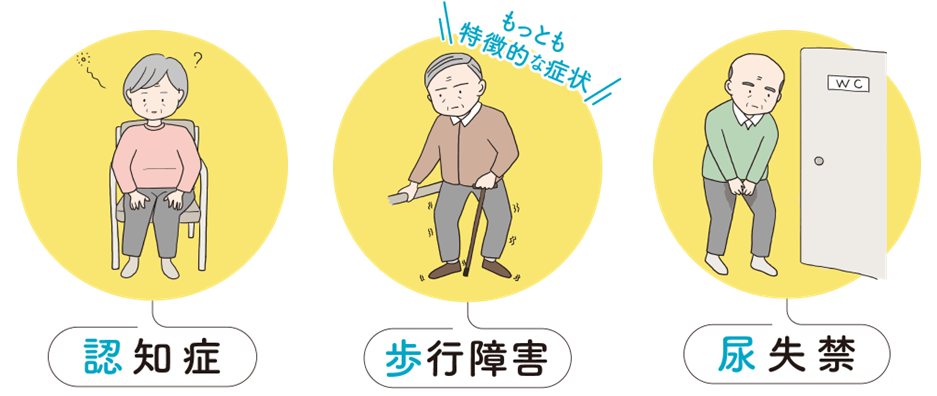 iNPHは高齢者が発症する可能性のある水頭症で、髄液が脳室内に過剰に溜まり、脳を圧迫することによって起こります。特徴的な症状として、歩行障害・認知症・尿失禁などがあり、髄液の流れをよくする治療によってこれらの症状が改善することから、”治療で改善する認知症”とも呼ばれています。その患者数は、少なくとも高齢者人口の1.1%程度とされており、『2022年版高齢社会白書』の高齢者人口をベースにすると、39万人よりも多い可能性が指摘されています。iNPHの症状は加齢に伴う症状によく似ているため、 治療を受けている人は、推定患者数の数%にとどまっています。