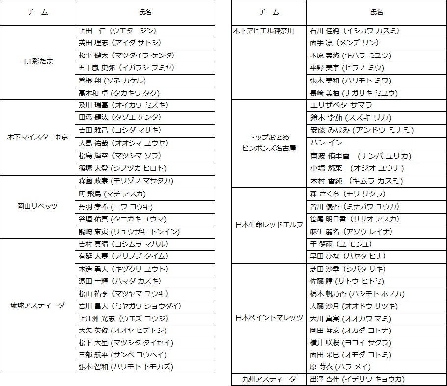 Tリーグでは、2022-2023シーズン 登録完了選手を以下の通りお知らせいたします。