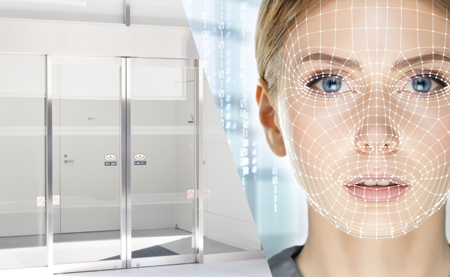 ・自動ドアと顔の照合認証の連動により、非接触仕様を実現