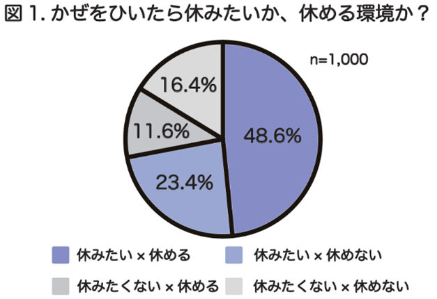 かぜのときは「休みたい」が多数だが、3人に1人は「休みたいのに休めない」