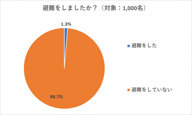 「避難をしましたか?」の質問に、「避難をした」と回答した人は1.3%でした。大半の方が避難はせずご自宅で過ごされたようですね。