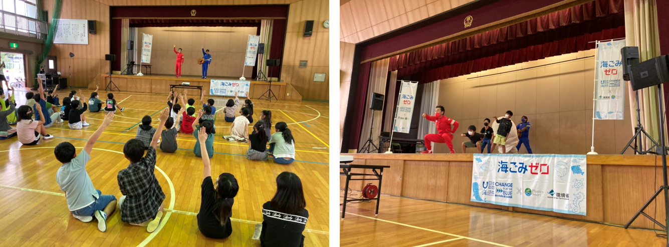 お馴染みの「なんでだろう~?」のネタを海と日本プロジェクトver.でやっていただき、生徒たちは楽しく海洋ごみについて学ぶことができました。