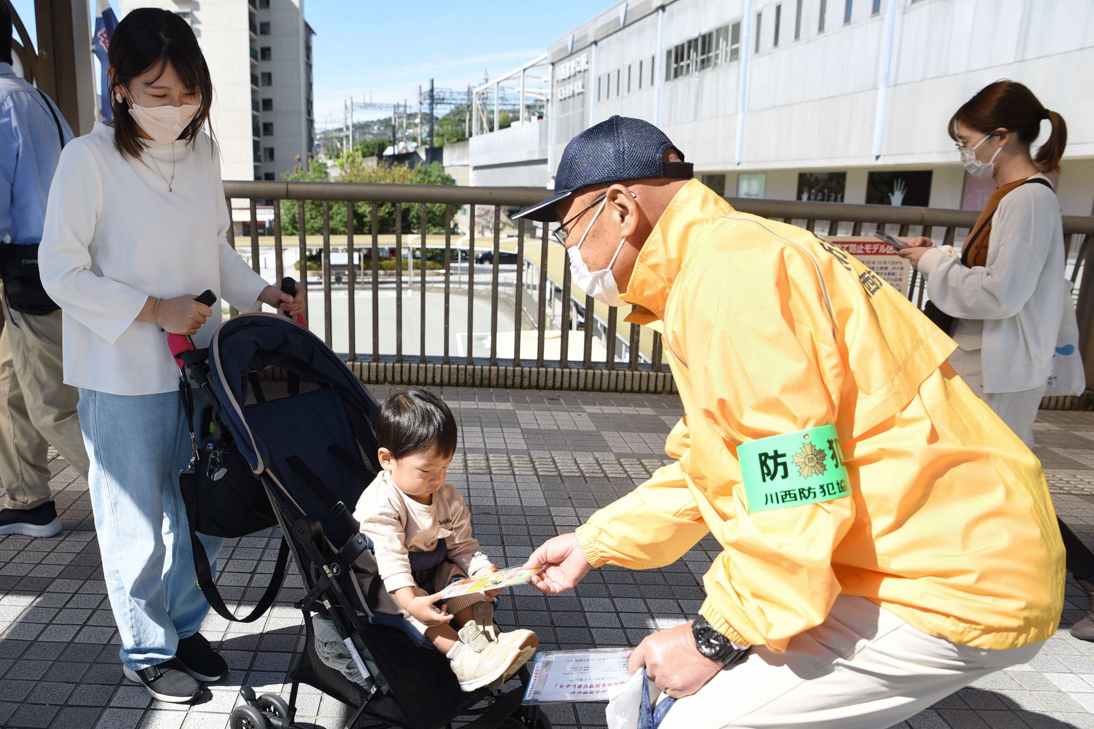 全国一斉に10月11日から20日までの10日間で実施される「全国地域安全運動」に伴い、川西警察署と川西防犯協会が11日に市内においても地域安全活動を強化するため、地域での防犯意識の一層の浸透と定着化を図り、安全で安心して暮らせる地域社会の実現をめざして街頭キャンペーンを実施。