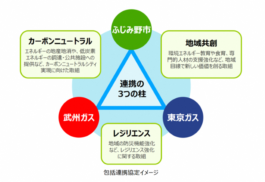 本協定は、ふじみ野市、武州ガスおよび東京ガスの3者の相互連携のもと、カーボンニュートラルシティの実現を目指すものです。今後3者は、定期的な協議を通じ、具体的な実施内容を決定します。